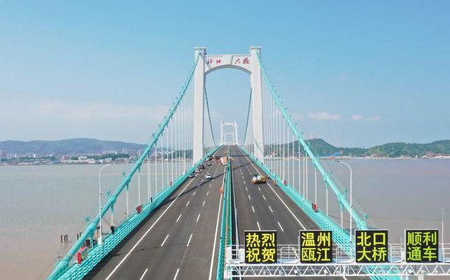 浙江瓯江北口大桥是世界上首座三塔四跨双层钢桁梁悬索桥,也是连接粤闽浙三省的甬莞高速贯通的最后关卡。