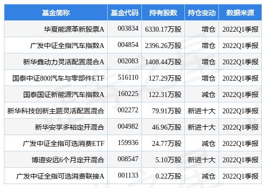 其中持有数量最多的基金为华夏能源革新股票 A,目前规模为 184.34 亿元,最新净值 3.754(6 月 23 日),较上一交易日上涨 2.62%,近一年上涨 14.31%。该基金现任基金经理为郑泽鸿。