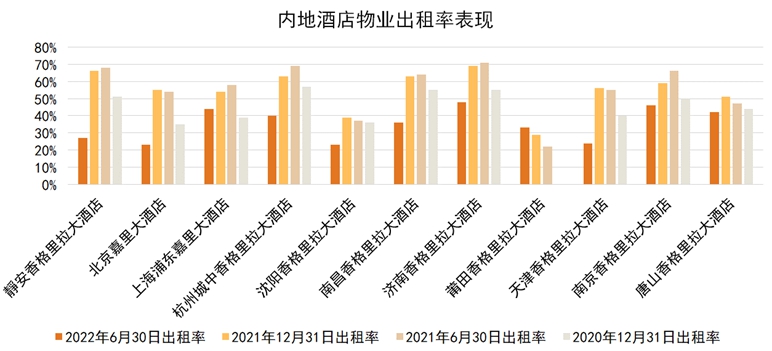 酒店业务方面由于受到上海封城以及对跨城出行、宴会及会展活动的防疫管控影响,收入及毛利分别按年减少46.1%及91.9%至4.25亿港元及0.22亿港元。报告期末,多个酒店物业出租率水平出现明显下跌,因为疫情减少的旅游及实体商务活动,对酒店业务造成较大的创伤。