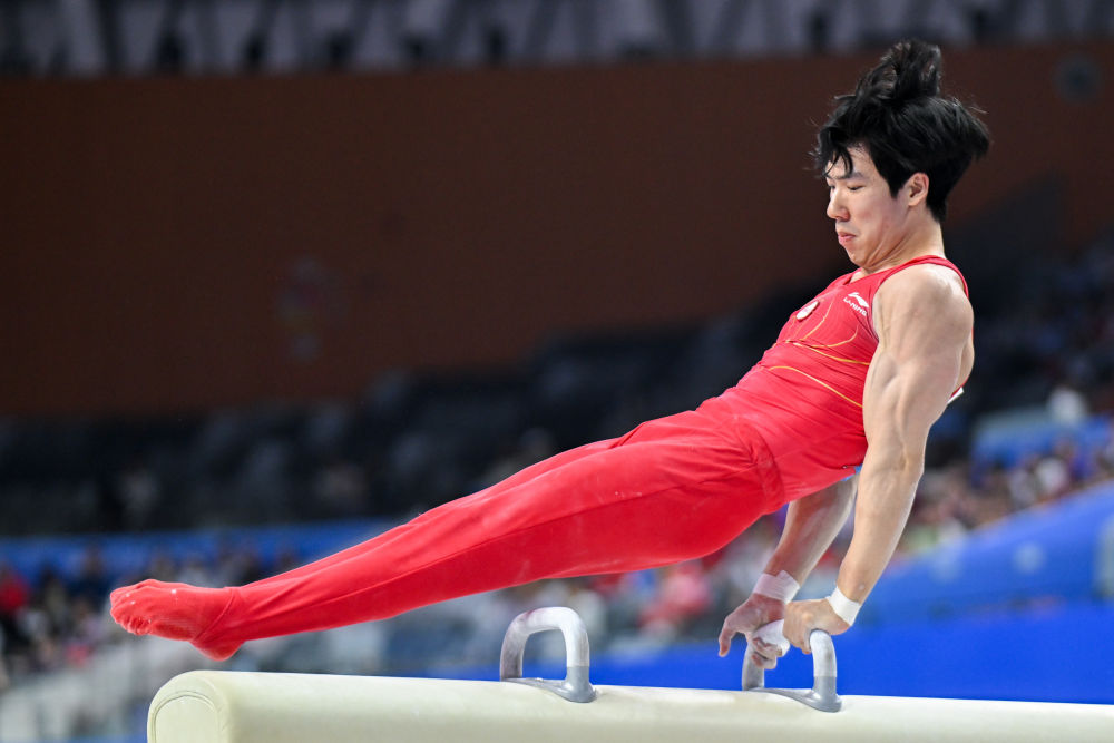 新华社肇庆11月12日电(记者曹祎铭)12日,在广东肇庆举行的第十五届全国运动会体操男子团体决赛中,江苏队以总成绩328.957分成功卫冕,湖南队与浙江队分列二、三名。 11月12日,江苏队选手孙炜在吊环比赛中。新华社记者 胥冰洁 摄 决赛中,江苏队与湖南队首先在自由体操项目上展开争夺。双方运动员均展现出强烈的夺冠欲望,但多名运动员出现失误,其中湖南队失误较多。首轮结束,两队仅有0.1的分差。第二轮鞍马项目中,世锦赛鞍马冠军、江苏队小将洪延明以14.466的单项最高分帮助江苏队进一步扩大领先优势。 名将张博恒领衔的湖南队在后续四轮比赛中奋起直追,尽管双杠和单杠项目均获得第一,无奈其他项目频繁失误,最终以327.024分的成绩获得亚军。 11月12日,湖南队选手张博恒在鞍马比赛中。新华社记者 杜子璇 摄 张博恒赛后接受采访时表示,全队都非常重视这场比赛。“大家都拿出了相当积极的态度来面对每一轮比赛,大家都在咬紧牙关。”他说,“年轻队员们的竞技状态非常好,虽然有些小失误,但经历大赛的锻炼,对他们以后的发展还是有很大帮助的。” 同样的紧张感也在浙江队与广东队之间弥漫着。六轮比赛中,两队成绩胶着。“比赛中的紧张感让人窒息,大家都很在意每一次的发挥。”浙江队杨皓楠说,“虽然从鞍马开始我们有一些小失误,但大家都抱着咬死比分不放弃的态度,从吊环项目开始,一点点把分数追了回来。”最终浙江队以317.427分获得季军。 作为老将,江苏队尤浩在赛后表示,这将是他最后一次参加全运会,希望在后面的比赛中能发挥出自己最好的竞技状态,“我不想留遗憾”。 这是全运会体操项目决出的第一块金牌,接下来5天还将继续进行女子团体、男子全能、女子全能及各个单项决赛。